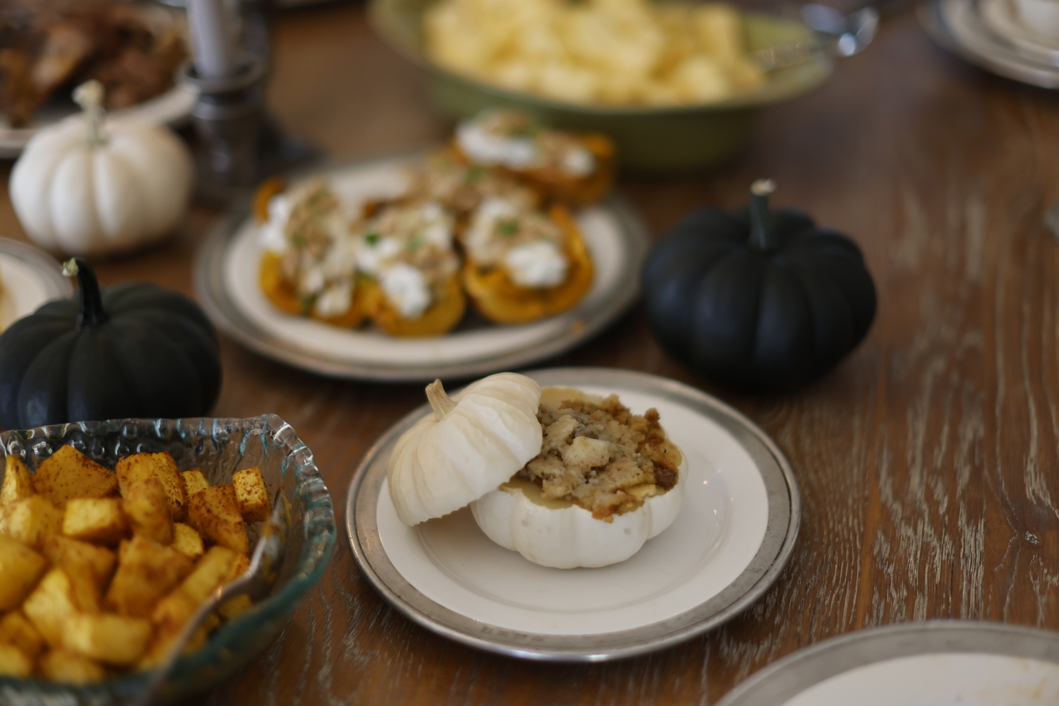 - Fluff the cooked stuffing with a fork, then gently fold in the roasted pumpkin pieces.